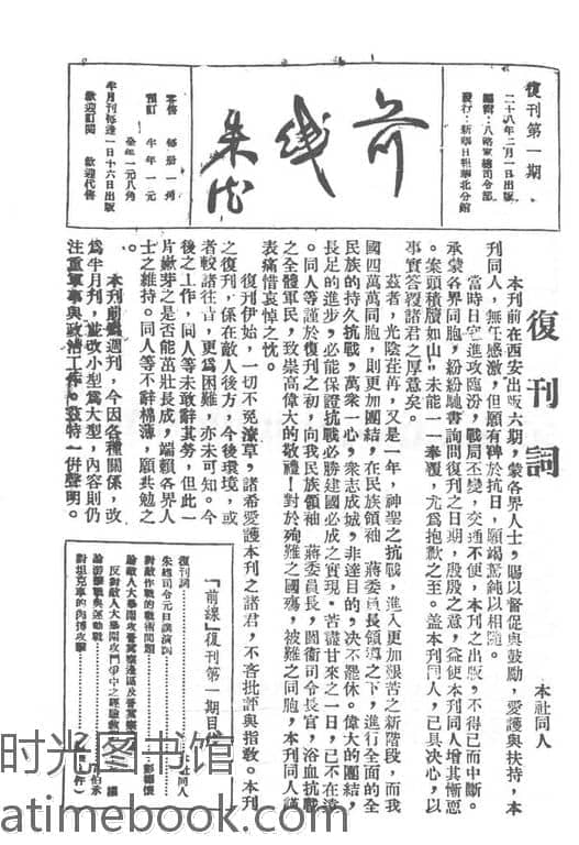 网盘路径:/时光图书馆珍藏系列/书籍文件/老杂志、老期刊/民国期刊/陕西/《前线》(西安)1939-1939年合集.db