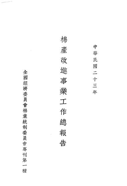 | 网盘路径:/时光图书馆珍藏系列/书籍文件/老图书/《棉产改进事业工作总报告》电子版合集.db | ||