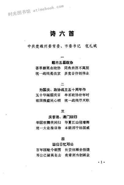 | 网盘路径:/时光图书馆珍藏系列/书籍文件/老图书/《楚雄市文史资料_第6辑》电子版合集.db | ||