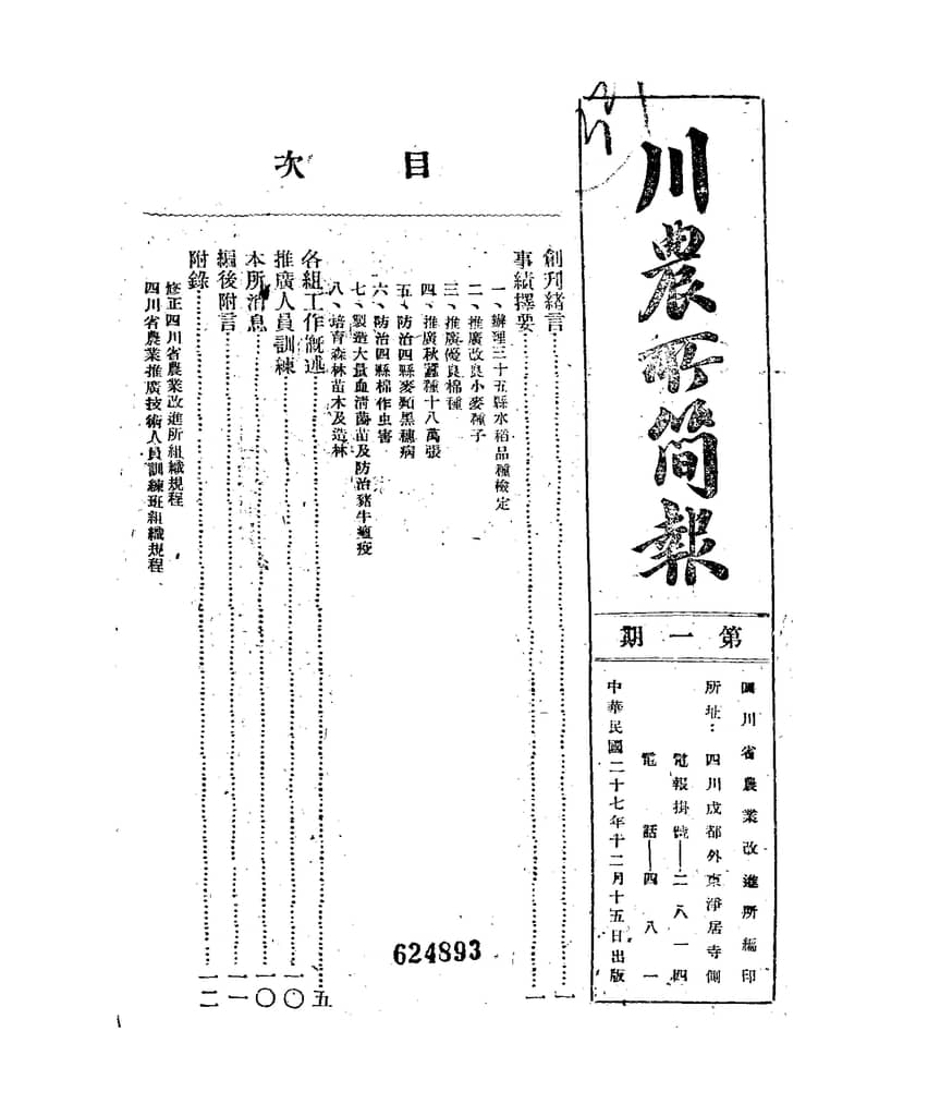 1938年总第1期(12月15日)