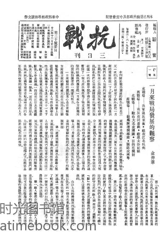 网盘路径:/时光图书馆珍藏系列/书籍文件/老杂志、老期刊/民国期刊/上海/《抗战》(上海)1937-1938年合集.db