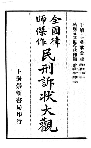 | 网盘路径:/时光图书馆珍藏系列/书籍文件/老图书/《民刑诉讼大观·手续上各状汇编_民刑及其他各状补编》电子版合集.db | ||