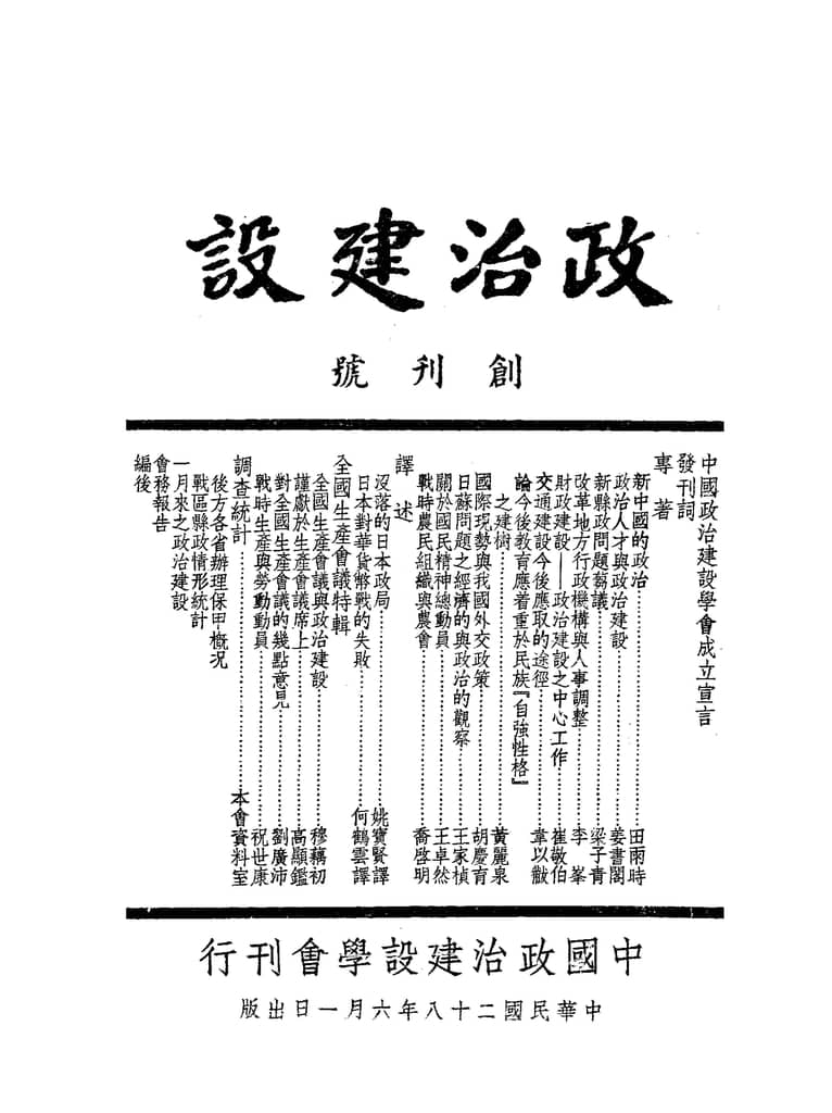 书籍名称:《政治建设》(重庆)1939-1944年合集