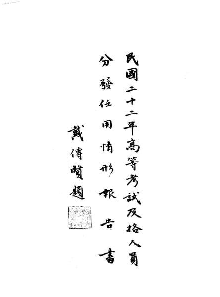 文件下载 | 名称:《民国二十二年高等考试及格人员分发任用情形报告书》电子版合集 | |