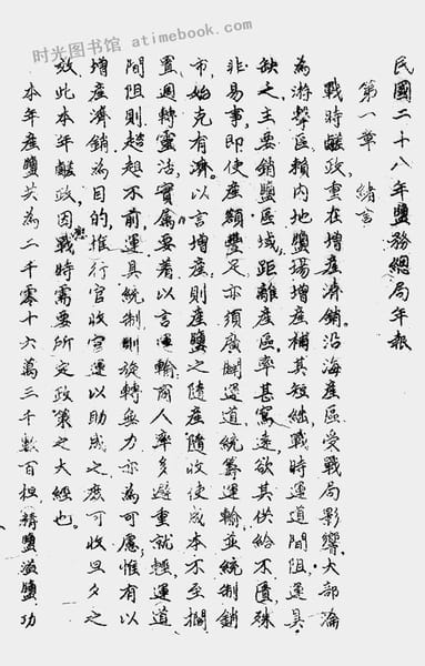 | 网盘路径:/时光图书馆珍藏系列/书籍文件/老图书/《民国二十八年盐务总局年报》电子版合集.db | ||