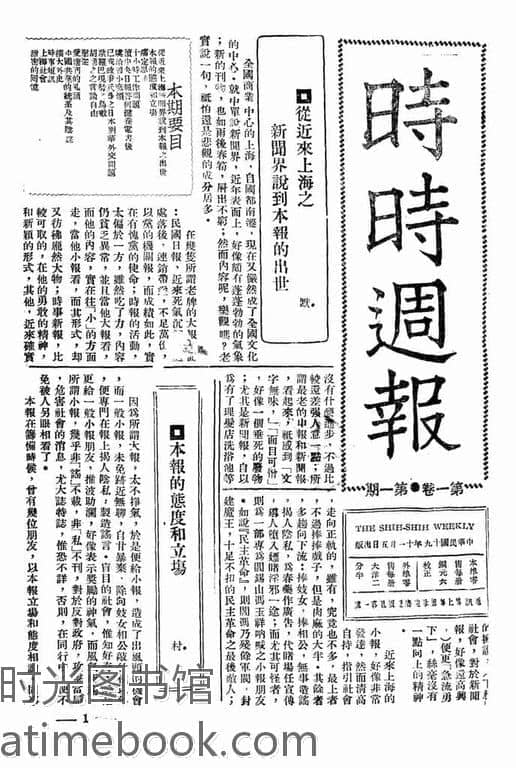网盘路径:/时光图书馆珍藏系列/书籍文件/老报纸/上海/《时时周报》(上海)1930-1931年合集.db