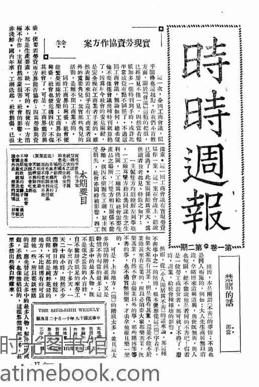 书籍名称:《时时周报》(上海)1930-1931年合集