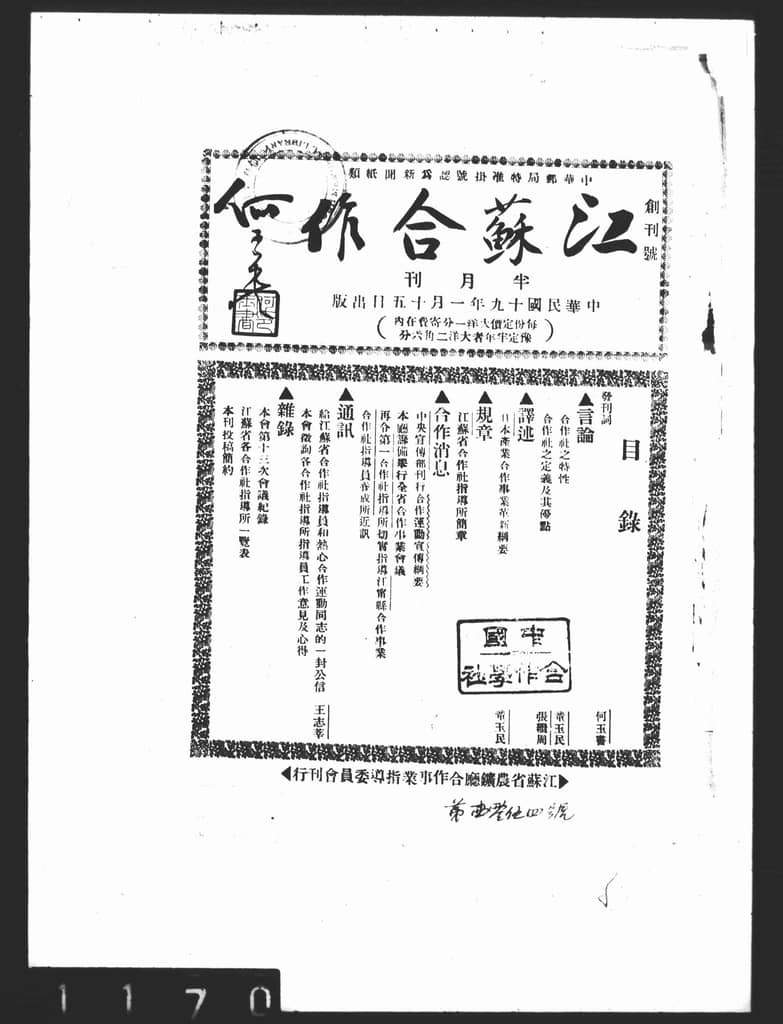 网盘路径:/时光图书馆珍藏系列/书籍文件/老杂志、老期刊/民国期刊/江苏/《江苏合作》1930-1937年合集.db
