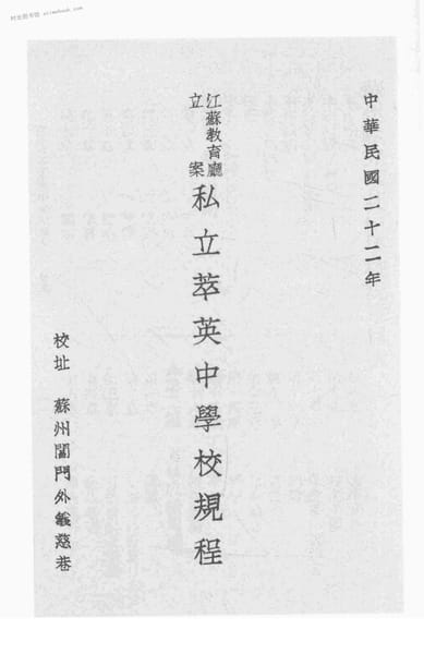 | 网盘路径:/时光图书馆珍藏系列/书籍文件/老图书/《江苏教育厅立案:私立萃英中学校规程》电子版合集.db | ||