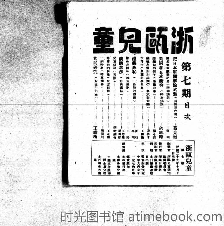 书籍名称:《浙瓯儿童》(浙江永嘉)1940-1941年合集
