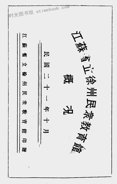 | 网盘路径:/时光图书馆珍藏系列/书籍文件/老图书/《江苏省立徐州民众教育馆概况》电子版合集.db | ||