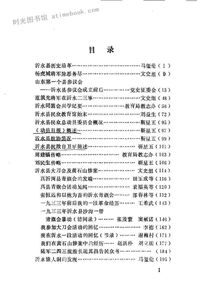 | 网盘路径:/时光图书馆珍藏系列/书籍文件/老图书/《沂水县文史资料_第1辑》电子版合集.db | ||