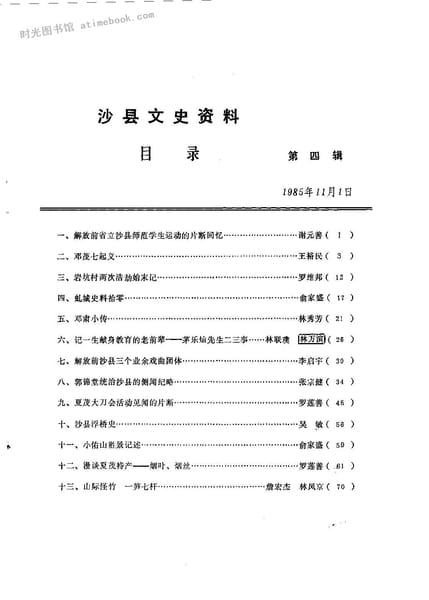 | 网盘路径:/时光图书馆珍藏系列/书籍文件/老图书/《沙县文史资料_第4辑》电子版合集.db | ||