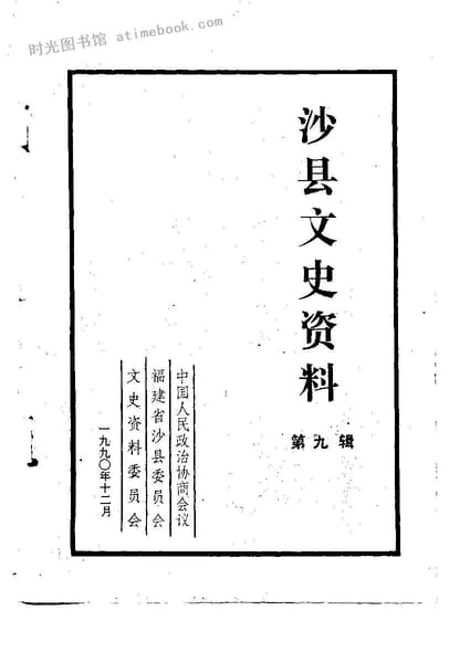 | 网盘路径:/时光图书馆珍藏系列/书籍文件/老图书/《沙县文史资料_第9辑》电子版合集.db | ||