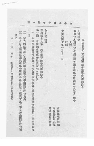 文件下载 | 名称:《法令全书_中华民国十年第一期》电子版合集 | |