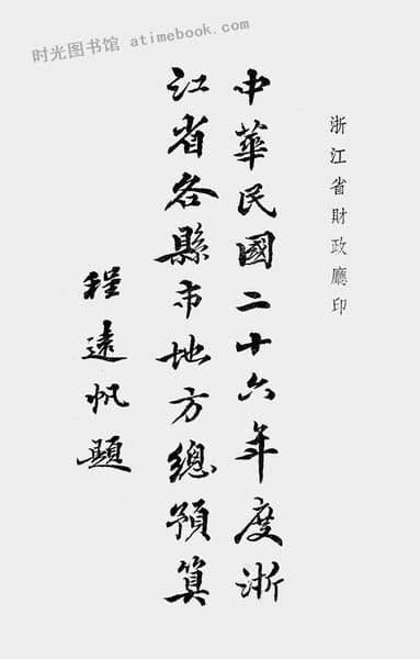 | 网盘路径:/时光图书馆珍藏系列/书籍文件/老图书/《浙江省民国二十六年度各县市地方岁入岁出总预算书(一)》电子版合集.db | ||