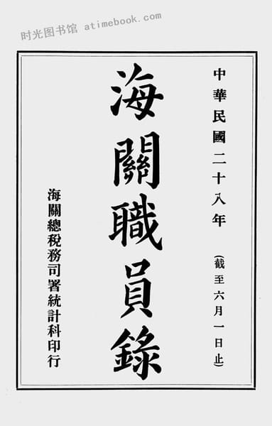 | 网盘路径:/时光图书馆珍藏系列/书籍文件/老图书/《海关职员录(中华民国二十八年截至六月一日止)》电子版合集.db | ||