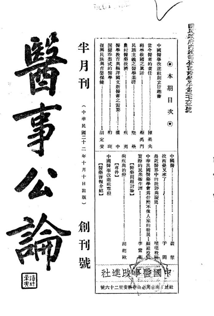 网盘路径:/时光图书馆珍藏系列/书籍文件/老杂志、老期刊/民国期刊/南京/《医事公论》(南京)1933-1937年合集.db
