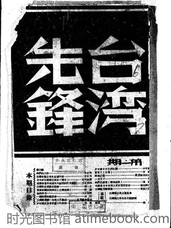 网盘路径:/时光图书馆珍藏系列/书籍文件/老杂志、老期刊/民国期刊/浙江/《台湾先锋》(浙江金华)1940-1941年合集.db