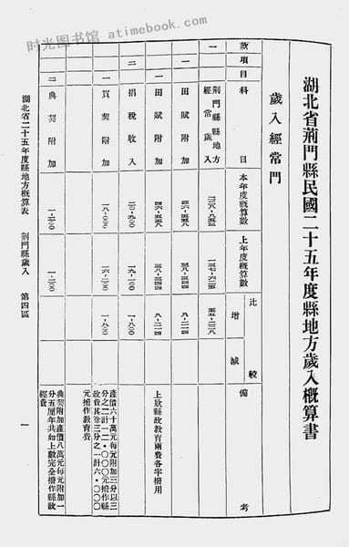 | 网盘路径:/时光图书馆珍藏系列/书籍文件/老图书/《湖北省民国二十五年度县地方岁入岁出预算书(二)》电子版合集.db | ||