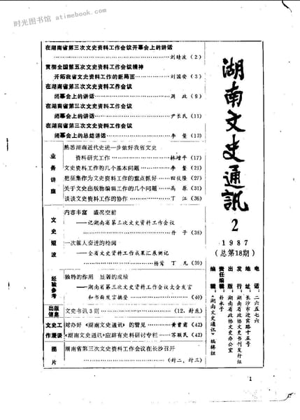 | 网盘路径:/时光图书馆珍藏系列/书籍文件/老图书/《湖南文史通讯__总第18期》电子版合集.db | ||