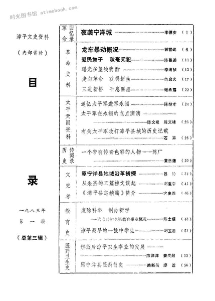 | 网盘路径:/时光图书馆珍藏系列/书籍文件/老图书/《漳平文史资料_第3辑》电子版合集.db | ||