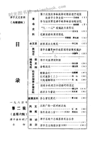 | 网盘路径:/时光图书馆珍藏系列/书籍文件/老图书/《漳平文史资料_第6辑》电子版合集.db | ||