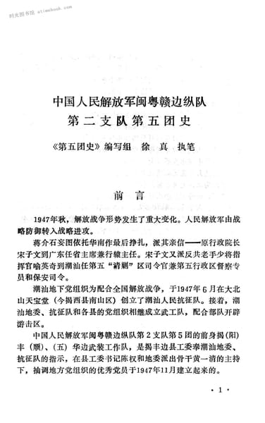 | 网盘路径:/时光图书馆珍藏系列/书籍文件/老图书/《潮汕军史丛书_中国人民解放军闽粤赣边纵队第2支队团史汇编_下》电子版合集.db | ||