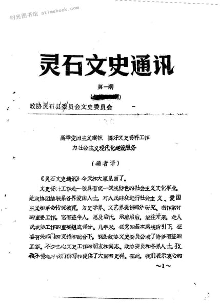 | 网盘路径:/时光图书馆珍藏系列/书籍文件/老图书/《灵石文史通讯_1991年第1-6辑》电子版合集.db | ||