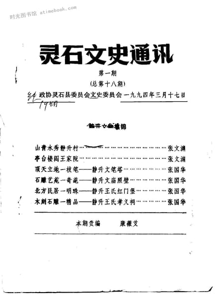 文件下载 | 名称:《灵石文史通讯_1994年第1、3辑_总第18、20辑》电子版合集 | |