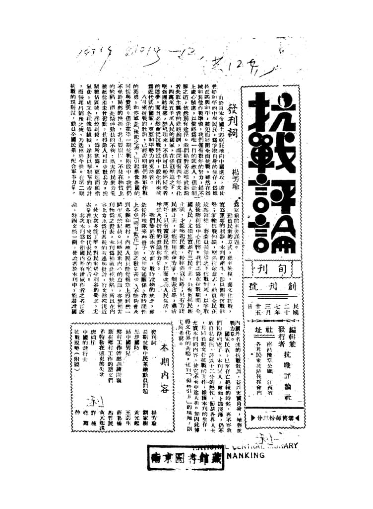书籍名称:《抗战评论》(南昌)1938年合集