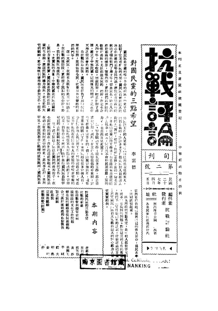 网盘路径:/时光图书馆珍藏系列/书籍文件/老杂志、老期刊/民国期刊/江西/《抗战评论》(南昌)1938年合集.db