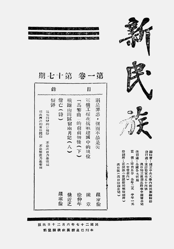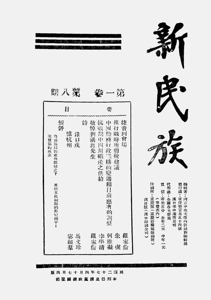 网盘路径:/时光图书馆珍藏系列/书籍文件/老杂志、老期刊/民国期刊/四川/《新民族》(重庆)1938-1939年合集.db