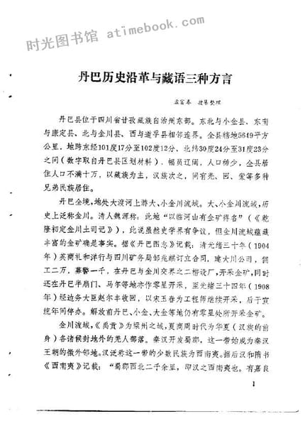 | 网盘路径:/时光图书馆珍藏系列/书籍文件/老图书/《甘孜藏族自治州丹巴文史资料选辑_第1辑》电子版合集.db | ||