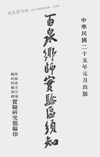| 网盘路径:/时光图书馆珍藏系列/书籍文件/老图书/《百泉乡师实验区须知》电子版合集.db | ||