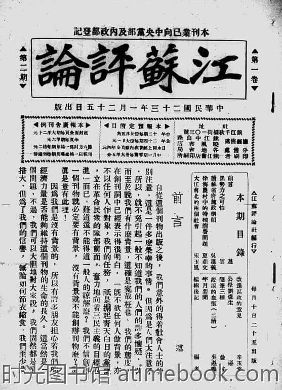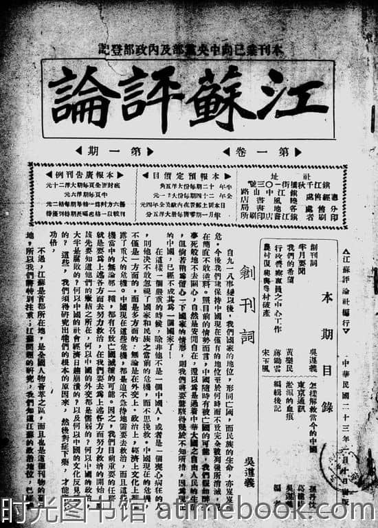 网盘路径:/时光图书馆珍藏系列/书籍文件/老杂志、老期刊/民国期刊/江苏/《江苏评论》(江苏)1934-1937年合集.db