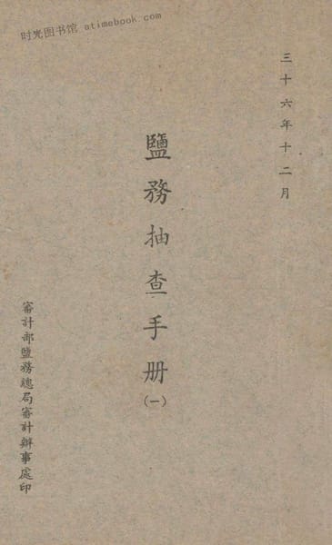 | 网盘路径:/时光图书馆珍藏系列/书籍文件/老图书/《盐务抽查手册(一)》电子版合集.db | ||