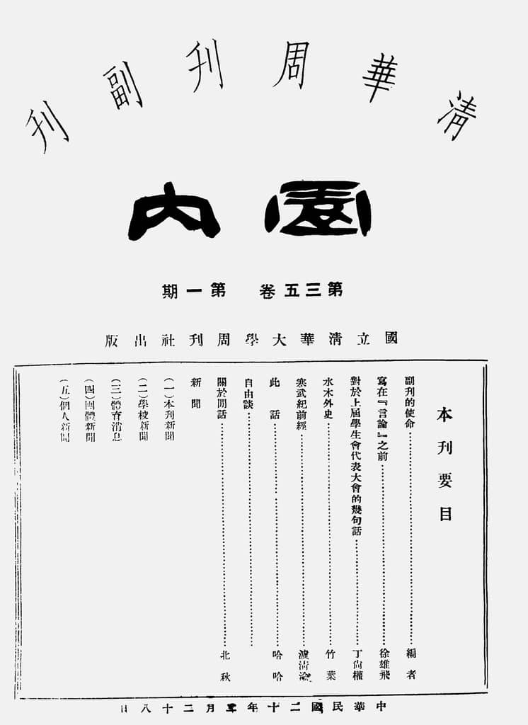 网盘路径:/时光图书馆珍藏系列/书籍文件/老杂志、老期刊/民国期刊/北京/《清华周刊副刊》(北京)1931-1932年合集.db