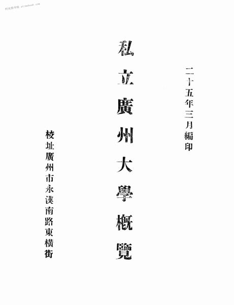 | 网盘路径:/时光图书馆珍藏系列/书籍文件/老图书/《私立广州大学概览》电子版合集.db | ||