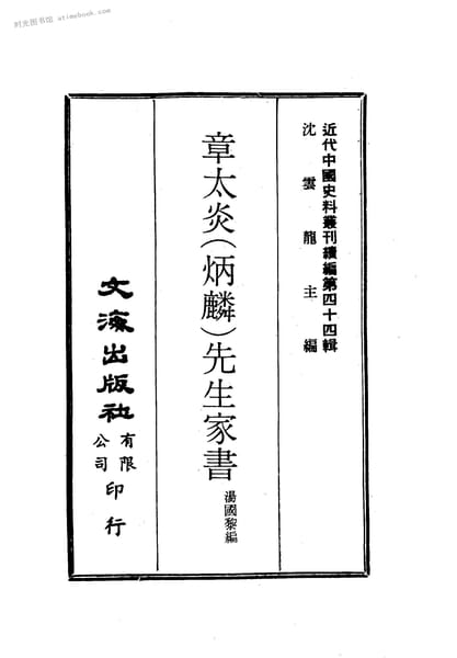 | 网盘路径:/时光图书馆珍藏系列/书籍文件/老图书/《章太炎(炳麟)先生家书》电子版合集.db | ||