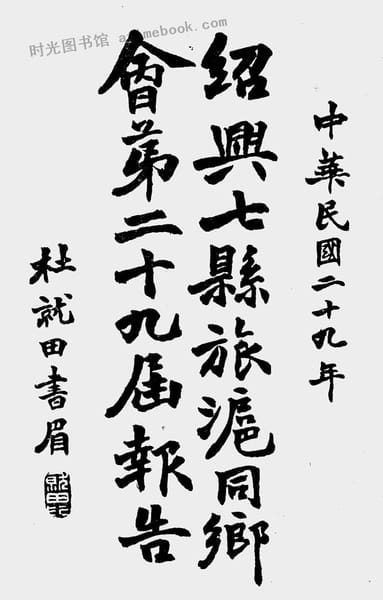 | 网盘路径:/时光图书馆珍藏系列/书籍文件/老图书/《绍兴七县旅沪同乡会第二十九届报告》电子版合集.db | ||