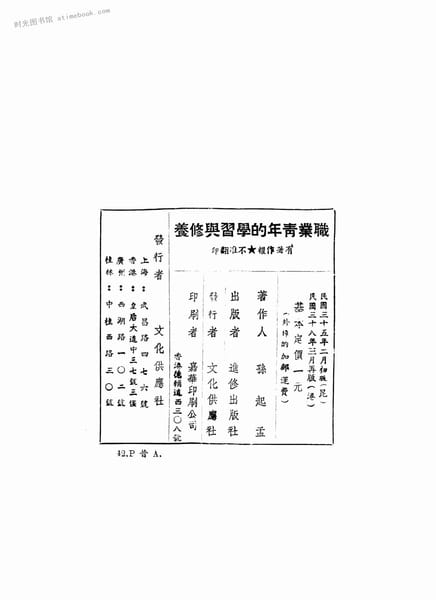 | 网盘路径:/时光图书馆珍藏系列/书籍文件/老图书/《职业青年的学习与修养》电子版合集.db | ||