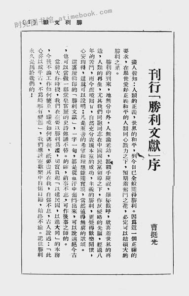 文件下载 名称:《胜利文献》电子版合集 关键词:抗日战争,日本投降,抗战胜利, 出版地区:福建 1945年9月1日 文件大小:4.55 MB 原始格式:db数据库 导出格式:png 下载方式:百度网盘、夸克网盘、阿里云盘、123云盘 网盘路径:/时光图书馆珍藏系列/书籍文件/老图书/《胜利文献》电子版合集.db 提示:也支持在线观看,安装阅读器即可,无需额外下载书籍文件。 下载地址: ★阅读器★ 百度网盘 阿里云盘 123云盘 夸克网盘 内容截图:(图片有压缩,使用阅读器观看更清晰) 书籍获取:书籍合集 喜欢 (0)