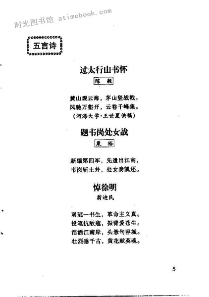 | 网盘路径:/时光图书馆珍藏系列/书籍文件/老图书/《茅山颂:华阳诗词_第7辑》电子版合集.db | ||
