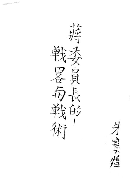 | 网盘路径:/时光图书馆珍藏系列/书籍文件/老图书/《蒋委员长的战略与战术》电子版合集.db | ||