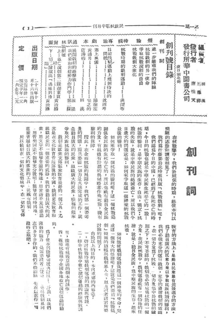 书籍名称:《抗战戏剧》1937-1938年合集