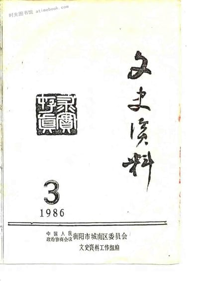 | 网盘路径:/时光图书馆珍藏系列/书籍文件/老图书/《衡阳城南文史文史资料(1986年)_第3辑》电子版合集.db | ||