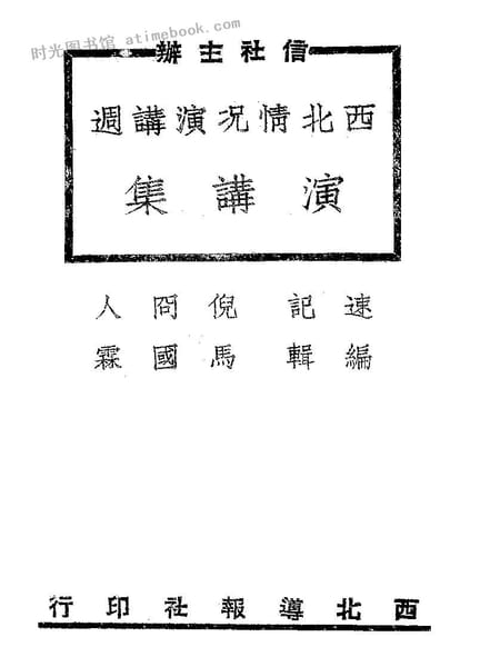 | 网盘路径:/时光图书馆珍藏系列/书籍文件/老图书/《西北情况演讲周演讲集》电子版合集.db | ||
