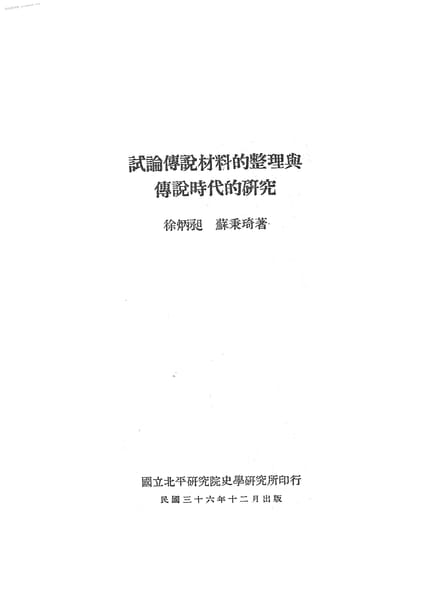 | 网盘路径:/时光图书馆珍藏系列/书籍文件/老图书/《试论传说材料的整理与传说时代的研究》电子版合集.db | ||