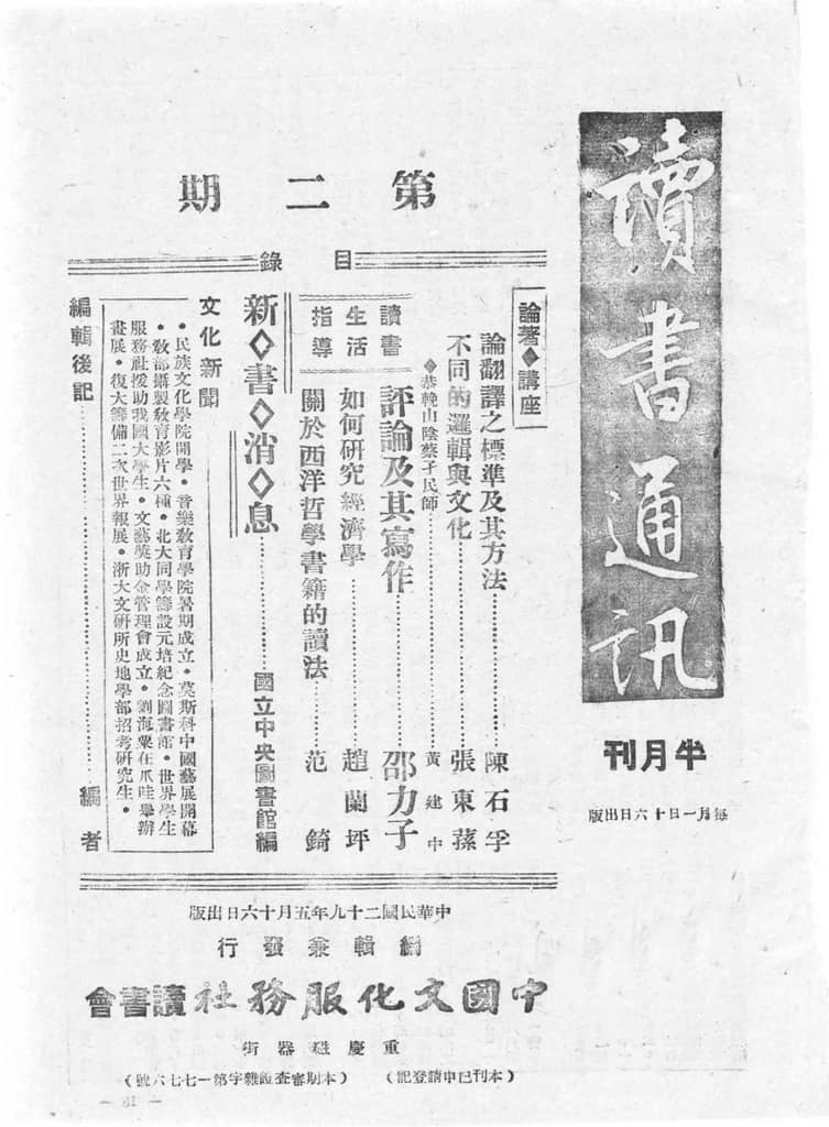 网盘路径:/时光图书馆珍藏系列/书籍文件/老杂志、老期刊/民国期刊/四川/《读书通讯》(重庆)1940-1948年合集.db